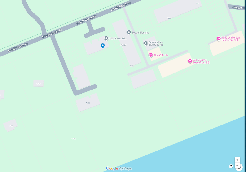 Turn left onto E Gulf Beach Dr (after crossing the bridge).